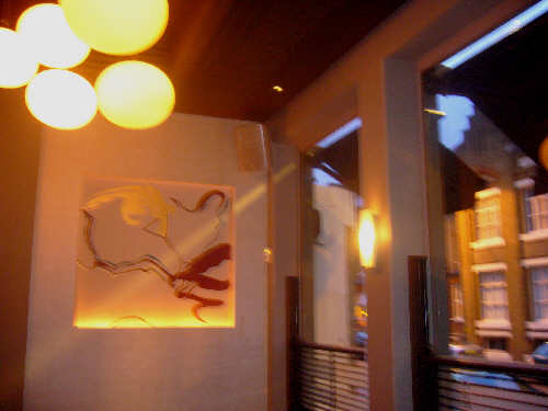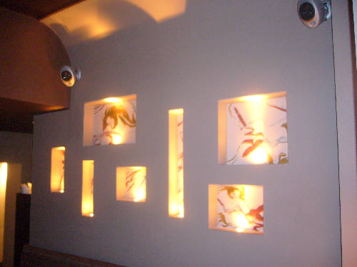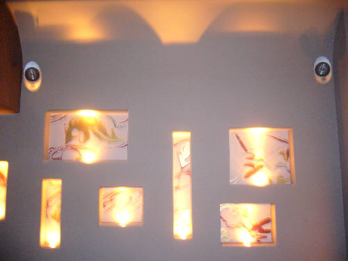 The RCF loudspeakers in the main area have been refurbished and re-finished in a custom RAL colour to match the walls. There is one in the pictures in the right hand corner above the mural