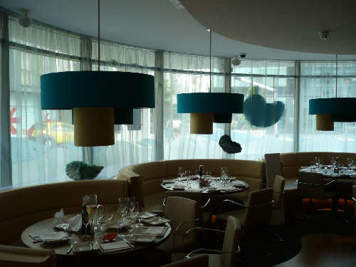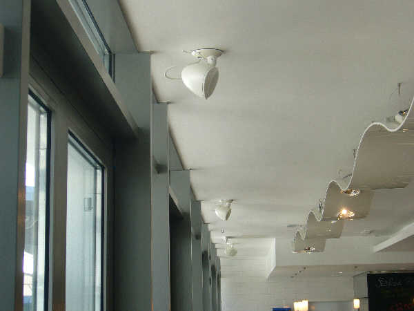 Kef Ci130 ceiling loudspeakers provide coverage for the central part of the restaurant