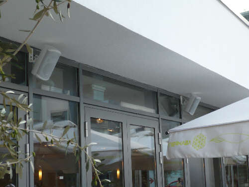 IP54 rated outdoor loudspeakers from Turbosound provide a discreet ambience for the open air seating